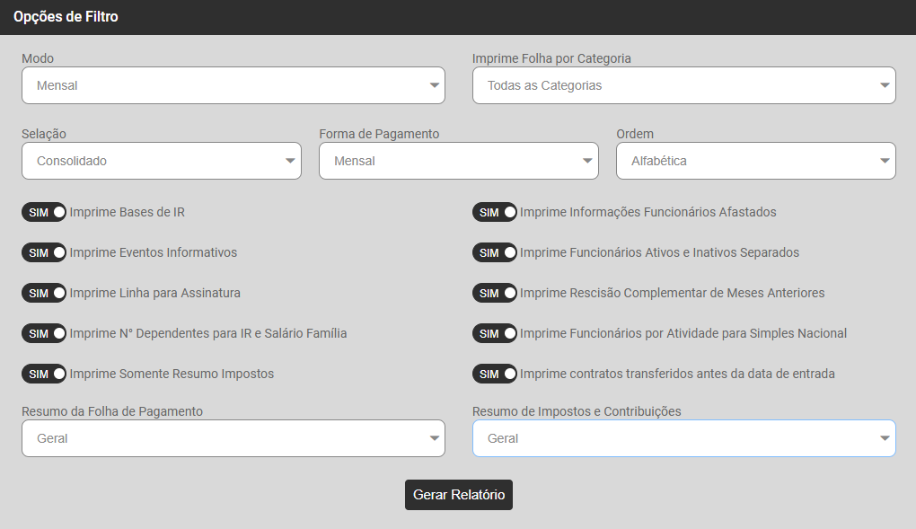 - Imprime Resumo da Folha de Pagamento - geral/não imprime