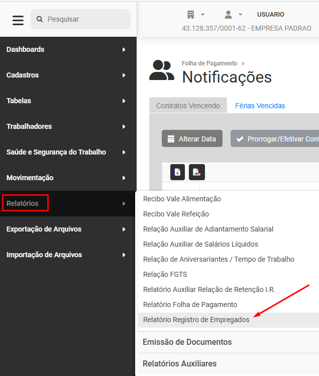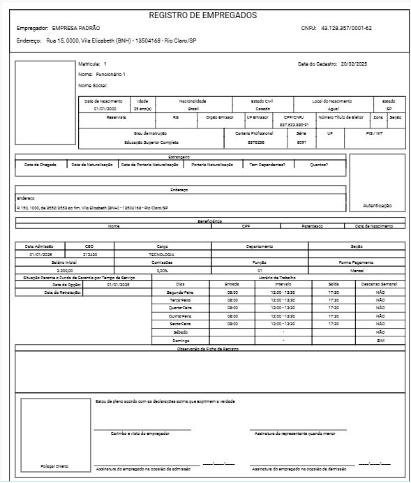 Relatório Registro de Empregados