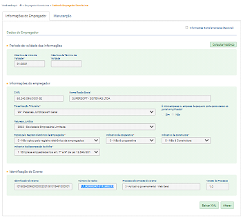 transmissãoEventos - Eventos Iniciais - Eventos - S-1000 - Informações do