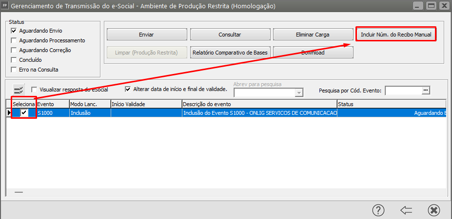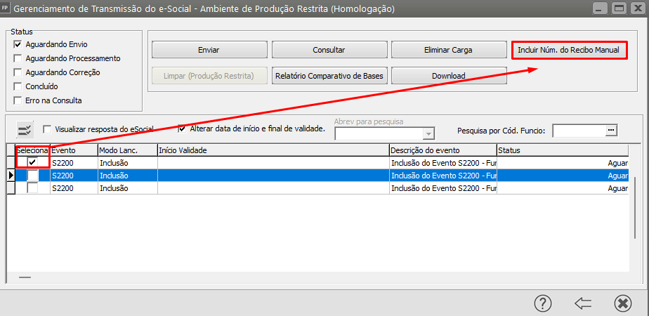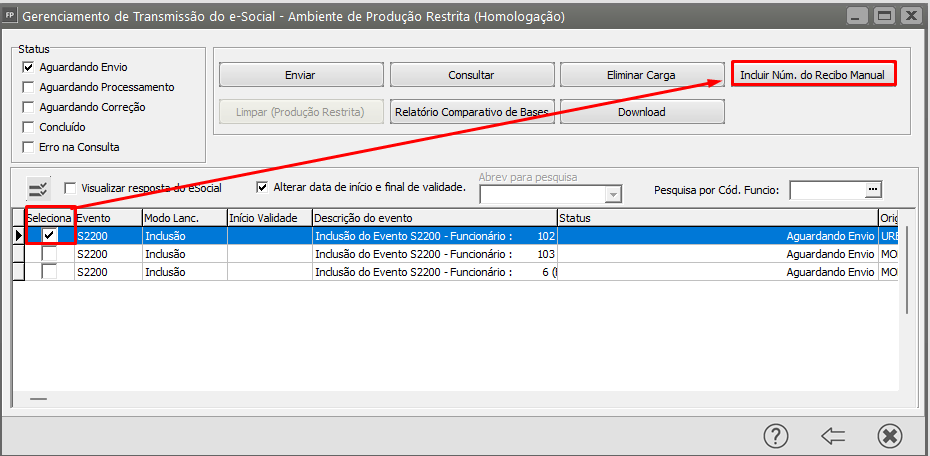 Dica: Selecione no máximo de 5 em 5 para que o eSocial recepcione corretamente os eventos!