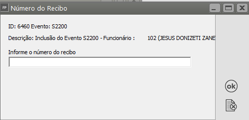 acesse o gerenciamento do eSocial, edite o S2200 do funcionário, defina o funcionário e em seguida clique em incluir recibo manual