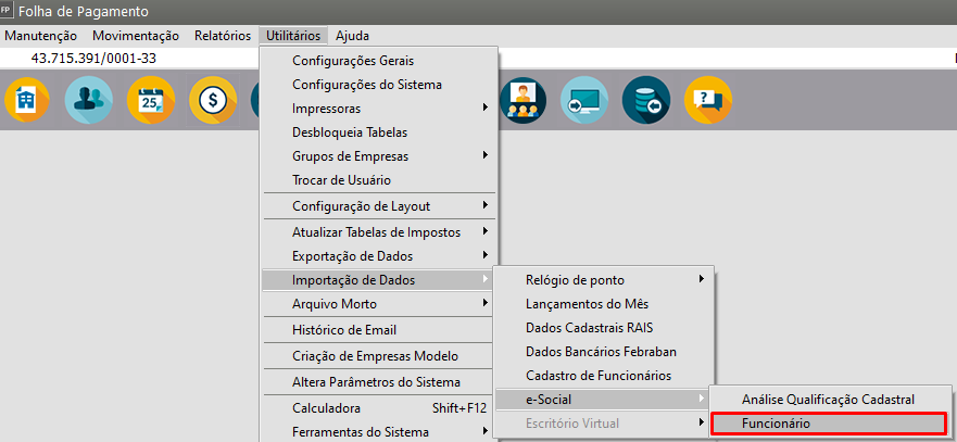 Acesse o menu Utilitários/importação de dados/eSocial/Funcionários