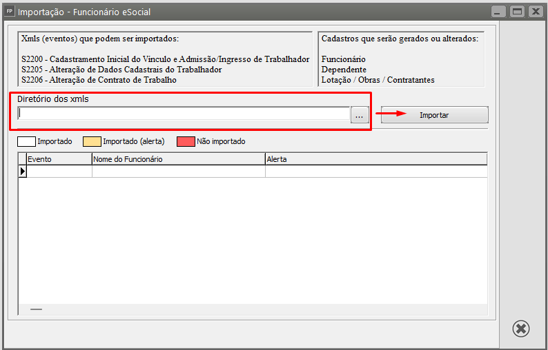 Obs: desta forma conseguiremos importar o XML do cadastro do funcionário e também as alterações posteriores
