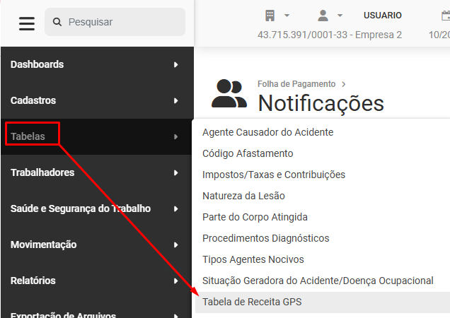 A tabela contendo a Tabela de Receita da GPS já está cadastrada e pronta para utilização no Módulo, para visualizá-la acesse o menu Tabelas>Tabela de Receita GPS