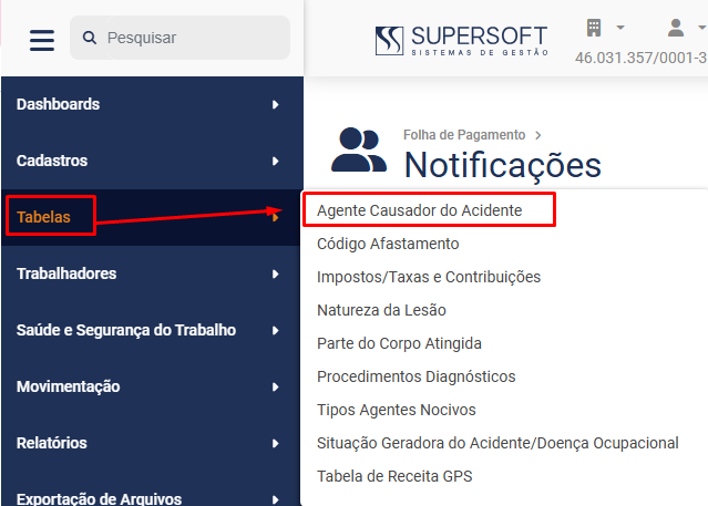 - Cadastro de Situação Geradora do Acidente/Doença Ocupacional
