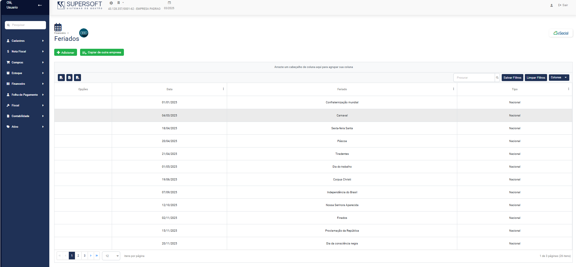 1) No Grid apresentado pelo Módulo Folha de Pagamento você irá visualizar: