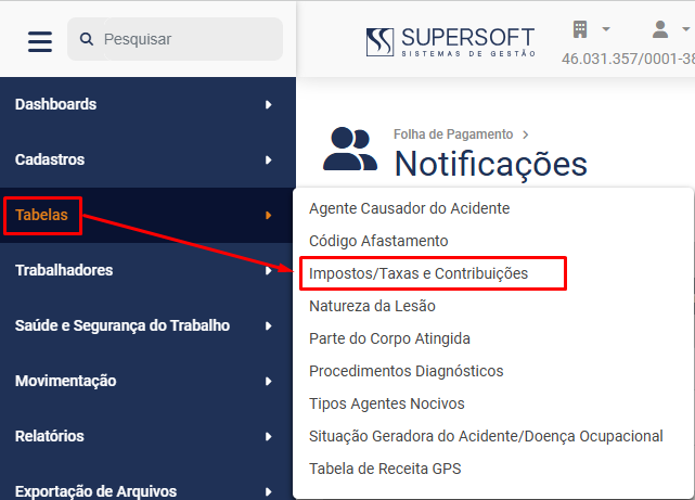 A Tabela contendo o Cadastro de Impostos Taxas e Contribuições já está previamente cadastrada no Módulo e para visualizá-la você deverá acessar o menu menu Folha de Pagamento>Tabelas>Impostos/Taxas e Contribuições