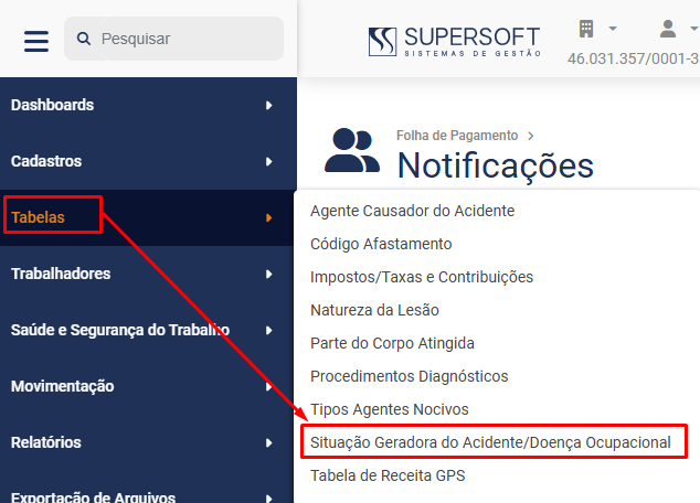 - Cadastro de Situação Geradora do Acidente/Doença Ocupacional