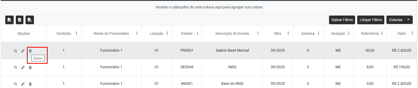 5) Você conseguirá ainda, gerar arquivo das informações através dos botões