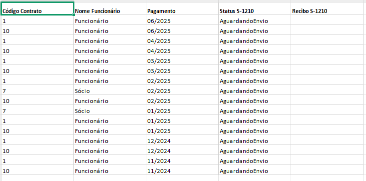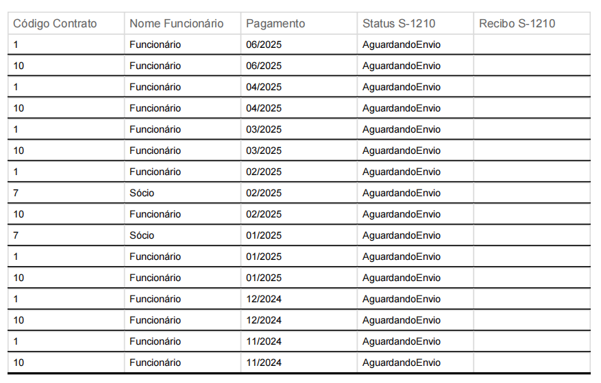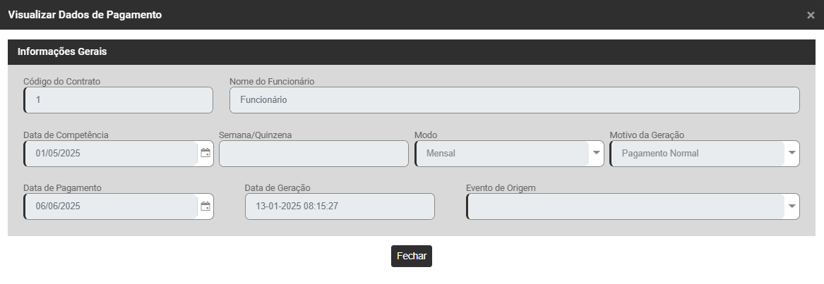 Os Dados de Pagamento são alimentados automaticamente conforme você realiza a geração de Holleriths/Recibos dos Trabalhadores