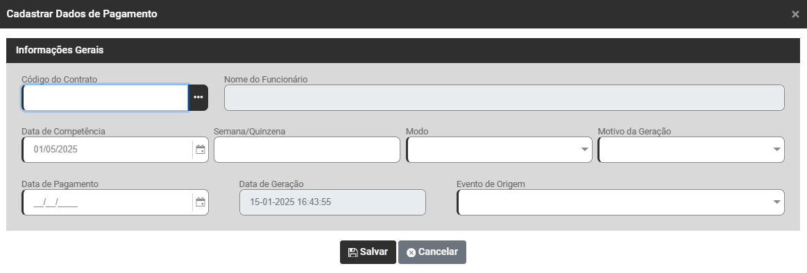 - Nome do Funcionário - Será apresentado automaticamente após ser definido o Código do Contrato