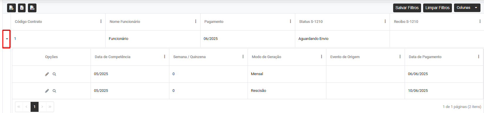 5) Clique na seta existente na lateral esquerda da informação para expandir os dados de pagamento
