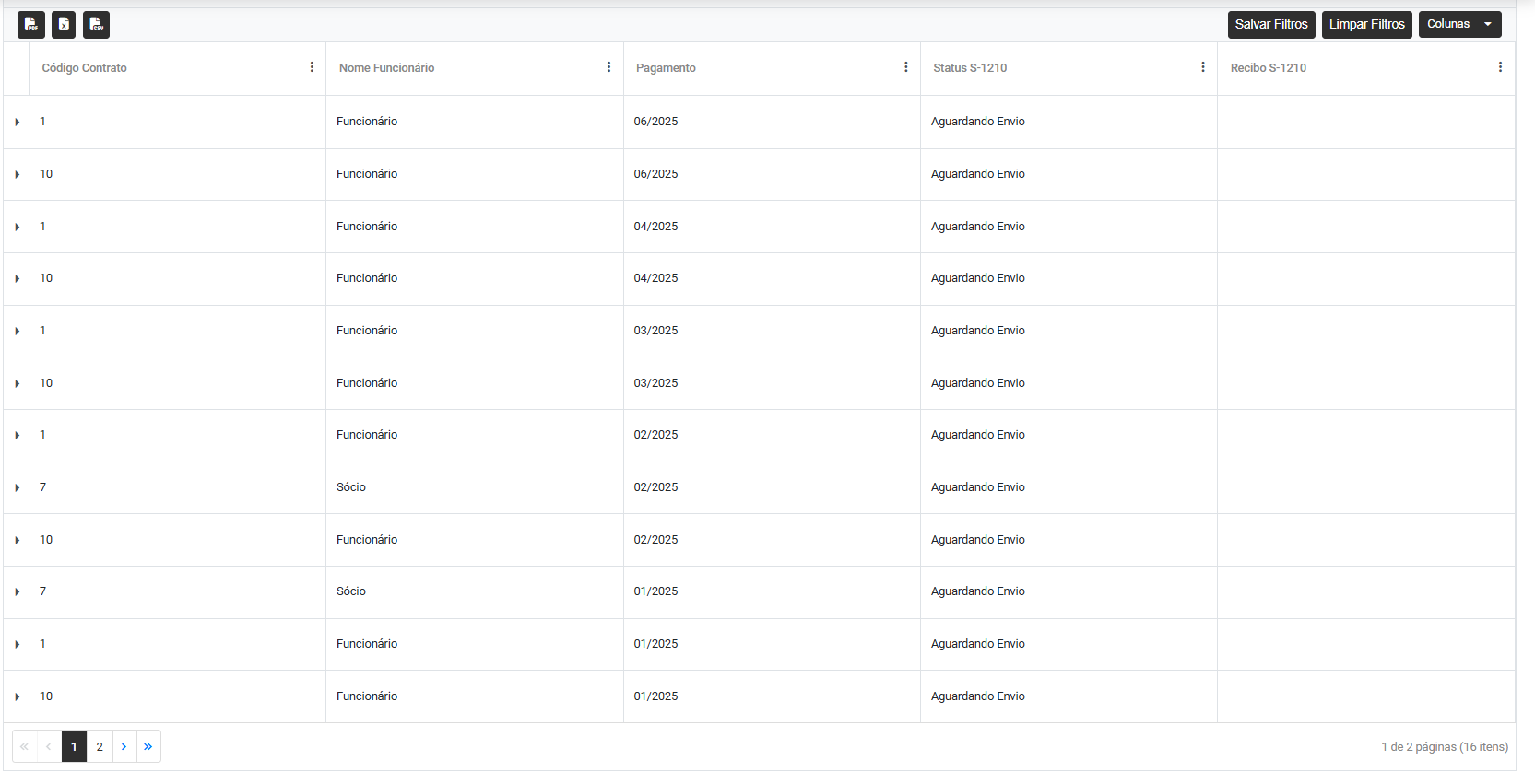 4) Serão apresentados todos os Dados de Pagamento de acordo com o Filtro Realizado, essas informações conterão