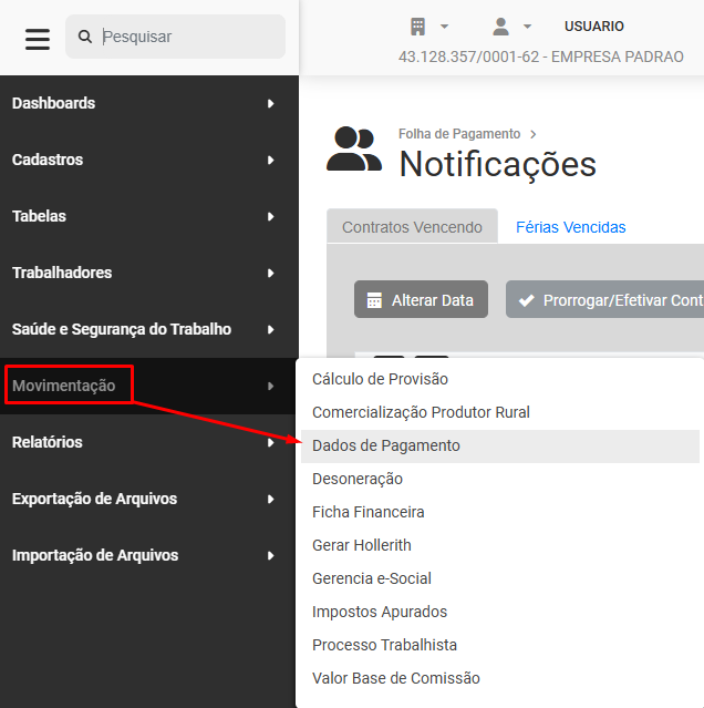 Para cadastrar ou visualizar os Dados de Pagamentos de Holleriths e Recibos de seus Trabalhadores, acesse o menu Movimentação>Dados de Pagamento