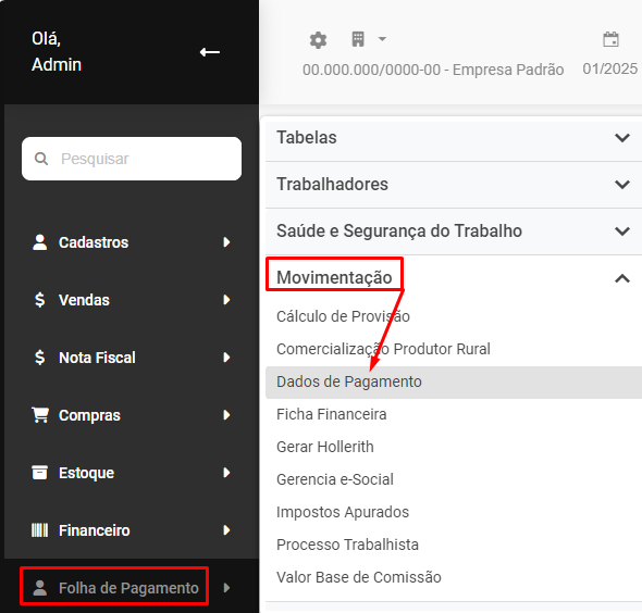 Os Dados de Pagamento são alimentados automaticamente conforme você realiza a geração de Holleriths/Recibos dos Trabalhadores