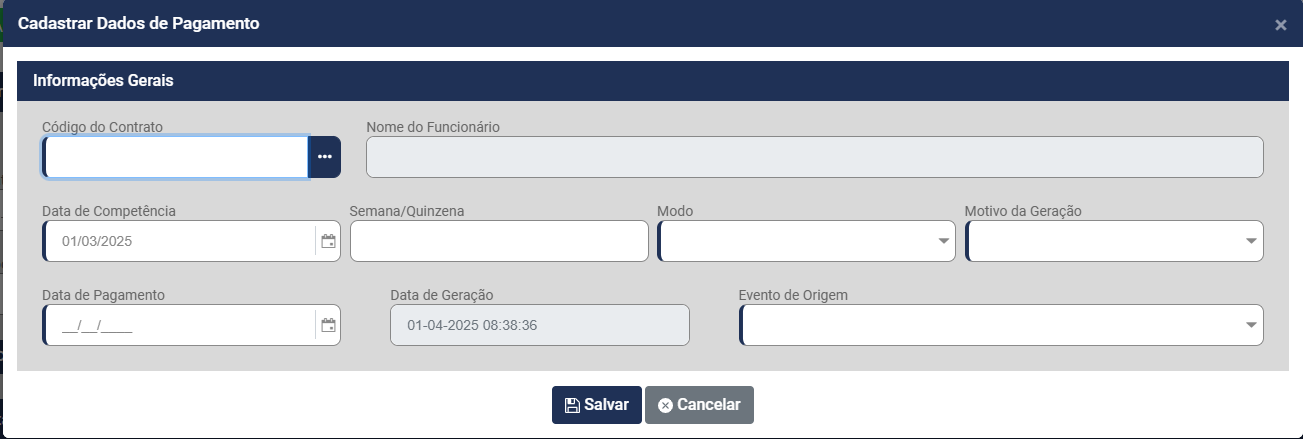 - Nome do Funcionário - Será apresentado automaticamente após ser definido o Código do Contrato