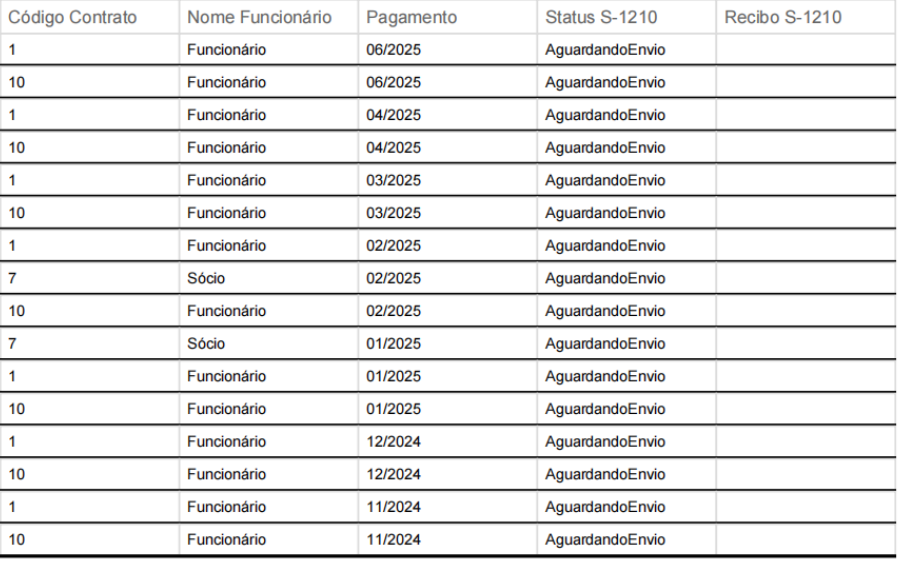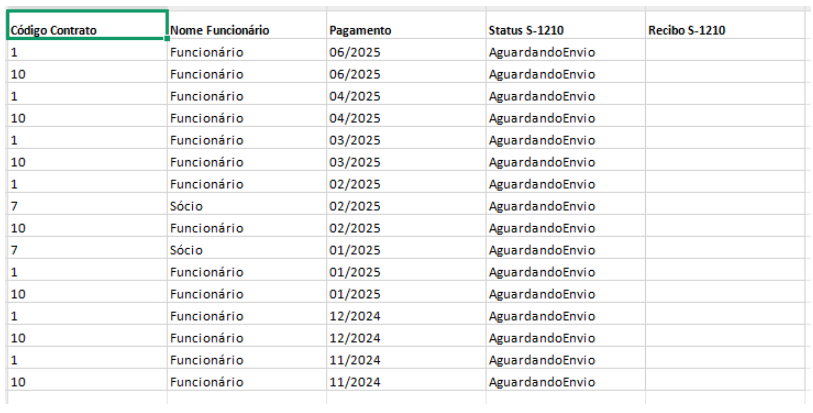 - Status do evento S-1210