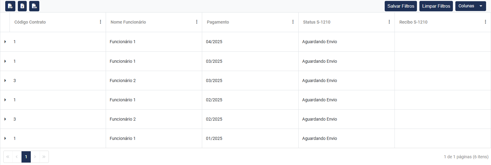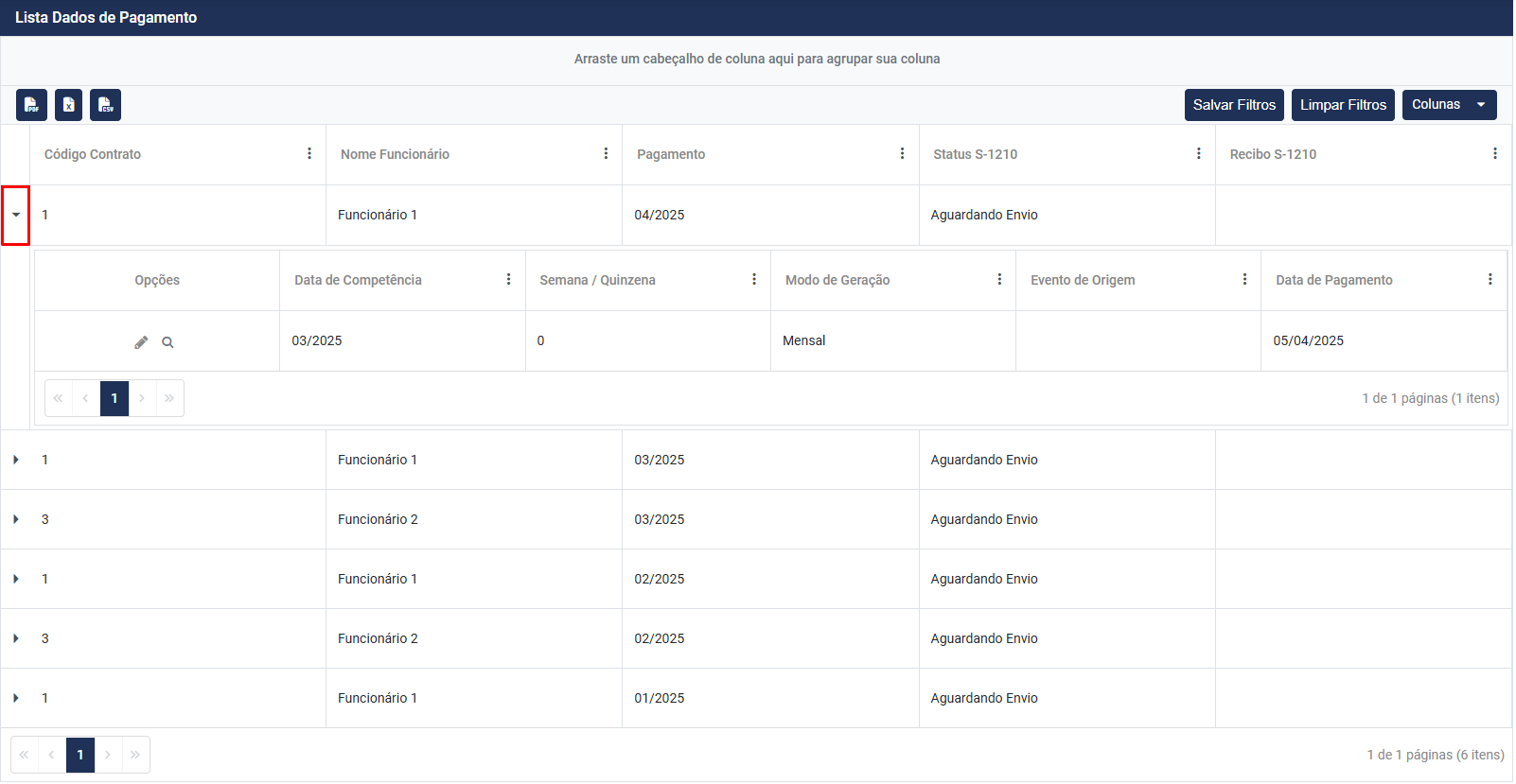 4) Serão apresentados todos os Dados de Pagamento de acordo com o Filtro Realizado, essas informações conterão