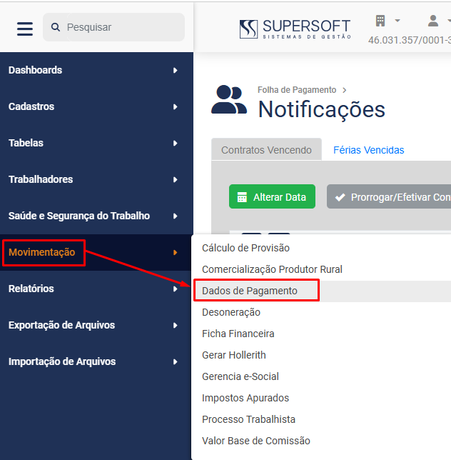 Para cadastrar ou visualizar os Dados de Pagamentos de Holleriths e Recibos de seus Trabalhadores, acesse o menu Folha de Pagamento>Movimentação>Dados de Pagamento