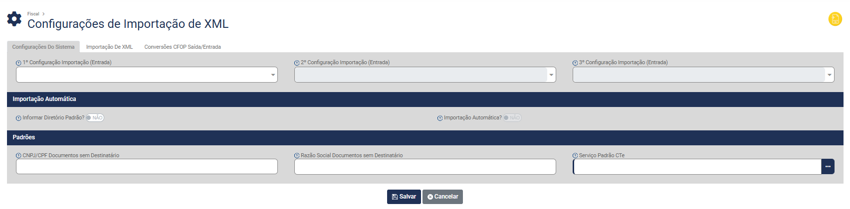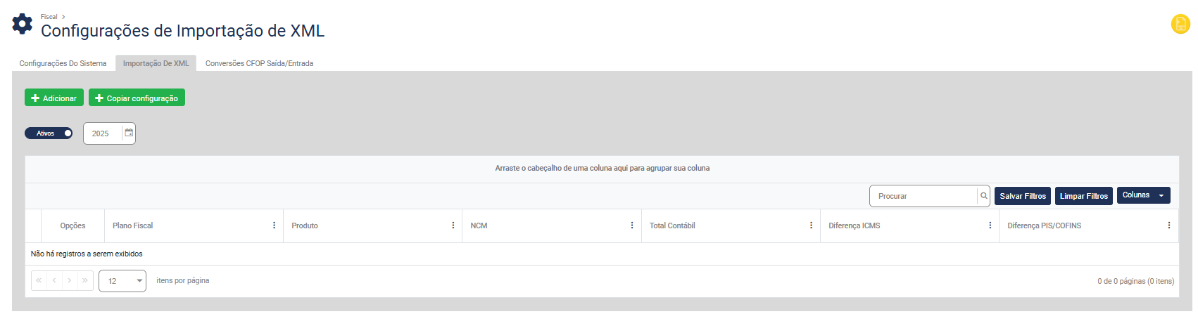 Faça a configuração dos CFOPs que serão utilizados na importação do XML