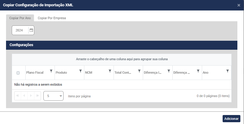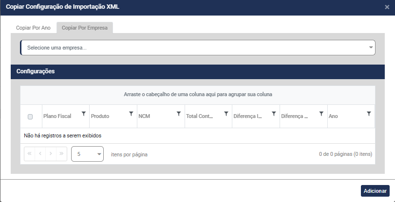 Através do botão Copiar Configuração você conseguirá importar para a Empresa Atual a configuração realizada em uma outra empresa, anteriormente
