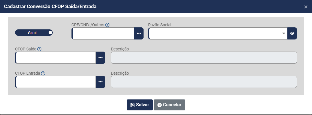 - Descrição - Será preenchido automaticamente quando for definido o CFOP Entrada