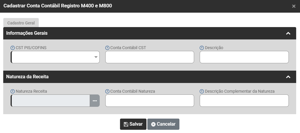 - Conta Contábil CST - Preencha o Código da conta analítica contábil debitada/creditada.