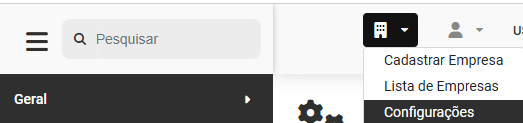 Para definir as Configurações Fiscais de sua Empresa, acesse na parte superior de seu Sistema, o menu Configurações