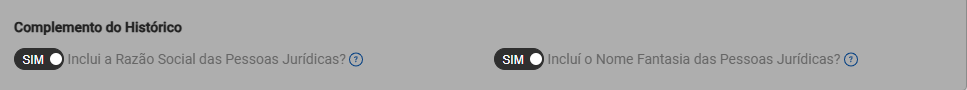 - Complemento do Histórico - Ao definir SIM o sistema levará no Complemento do Histórico Contábil a Razão Social da pessoa jurídica vinculada ao lançamento.