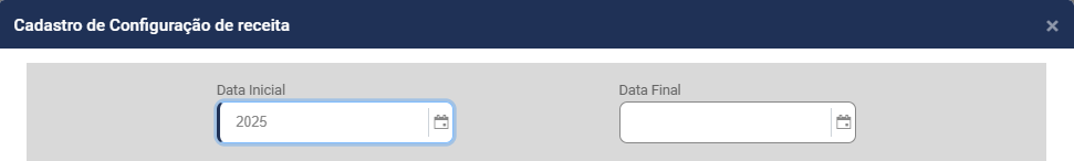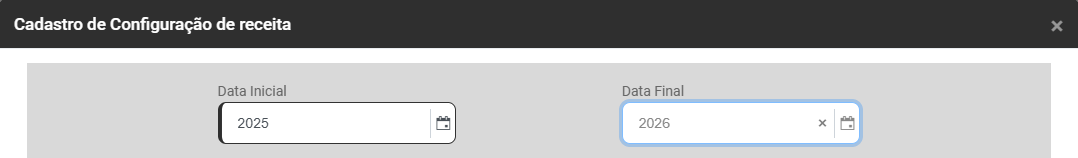 b) informe o ano Final da utilização de Receita (campo não obrigatório) - A partir da data informada neste campo o Módulo não permitirá que a Receita seja utilizada