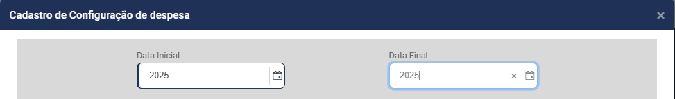 b) informe o ano Final da utilização da Despesa (campo não obrigatório) - A partir da data informada neste campo o Módulo não permitirá que seja utilizada a Despesa