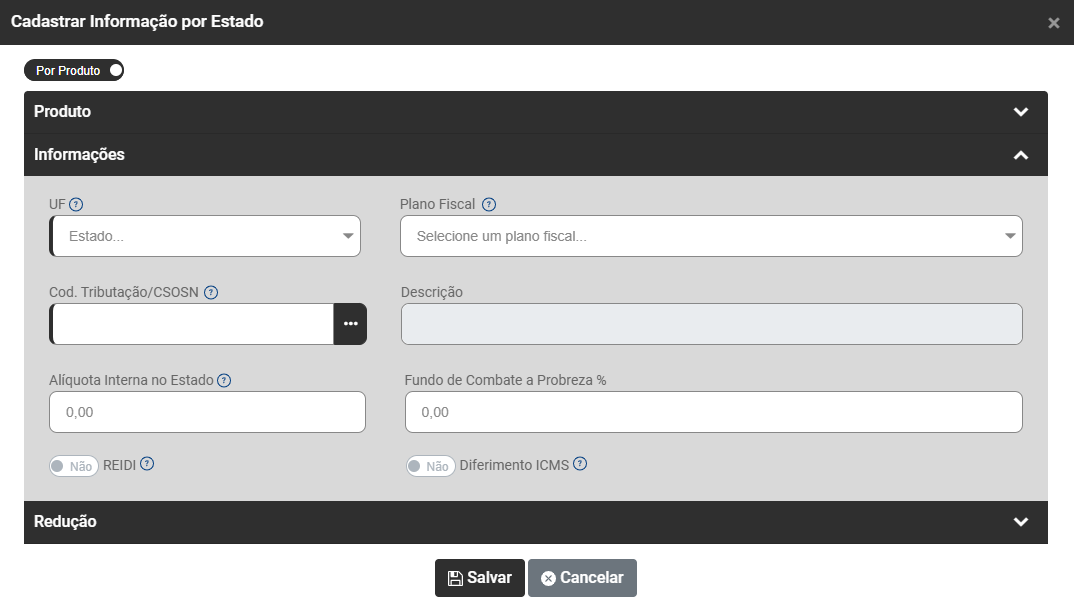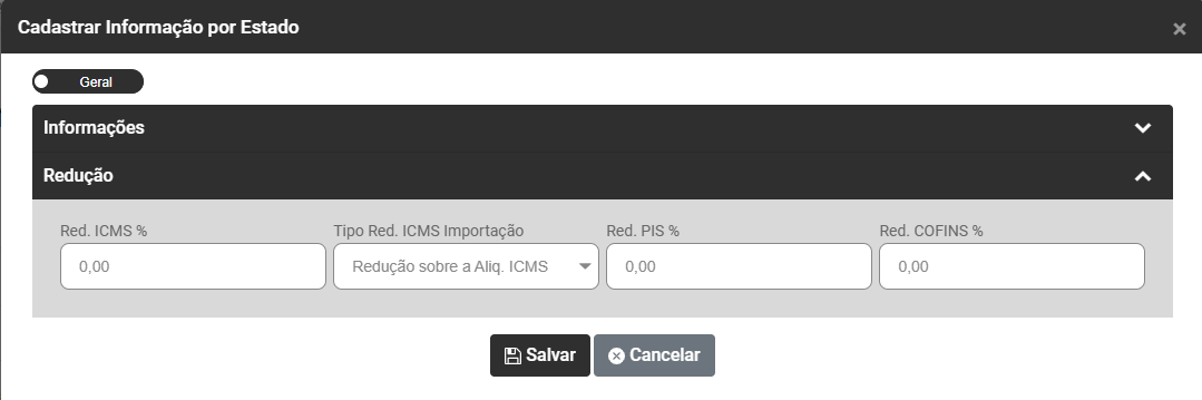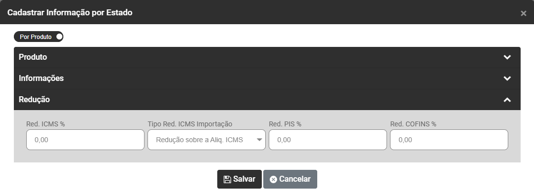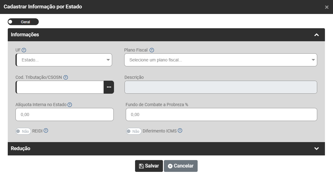 - Redução ICMS em Percentual