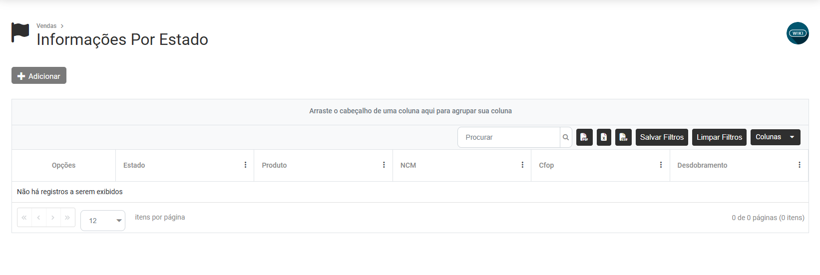 Ao acessar Cadastro das Informações Por Estado, será apresentada a tela com o Grid contendo as seguintes informações: