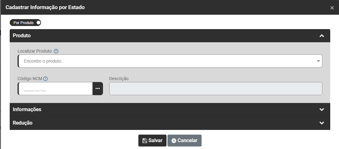 - Descrição - Será preenchido automaticamente no momento que definir o Código NCM