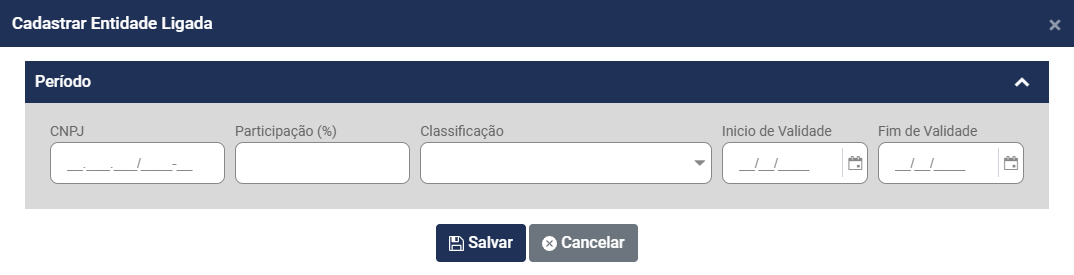Será apresentada a tela para Cadastrar Entidade Ligada, defina
