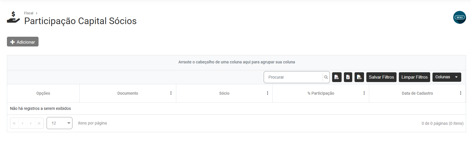Para cadastrar a Participação dos Sócios no Capital Social da Empresa acesse o menu Cadastros>Participação Capital Sócios