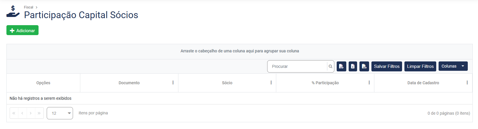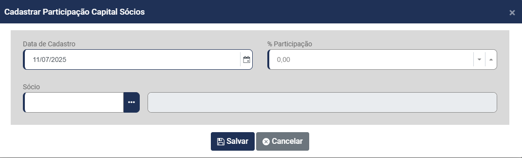 Cadastro de Participação no Capital (Sócios)