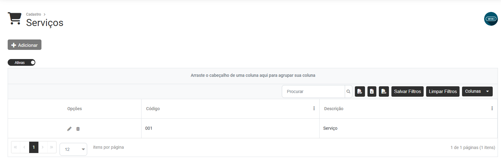 Cadastro de Serviços