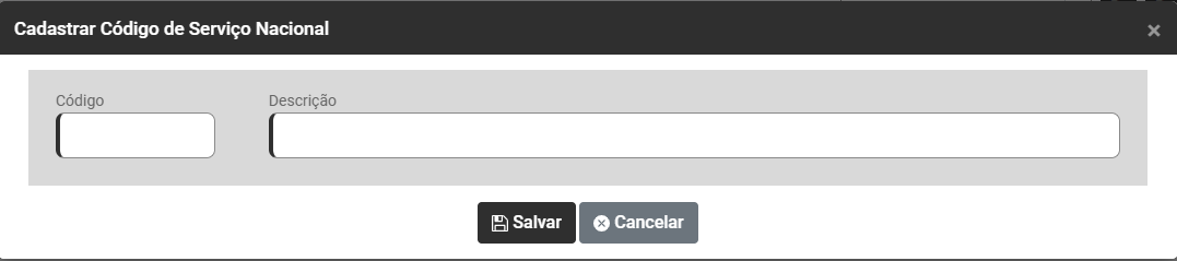 Atenção: Se você já cadastrou algum código de serviço, ele não será cadastrado novamente