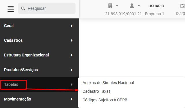 Para que você cadastre as Taxas de Juros de ICMS e Taxa Selic, acesse o menu Tabelas>Cadastro de Taxas