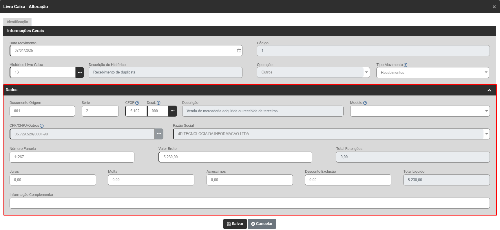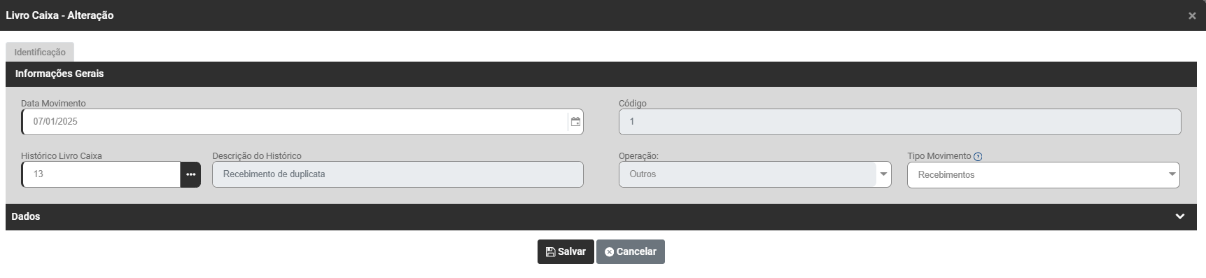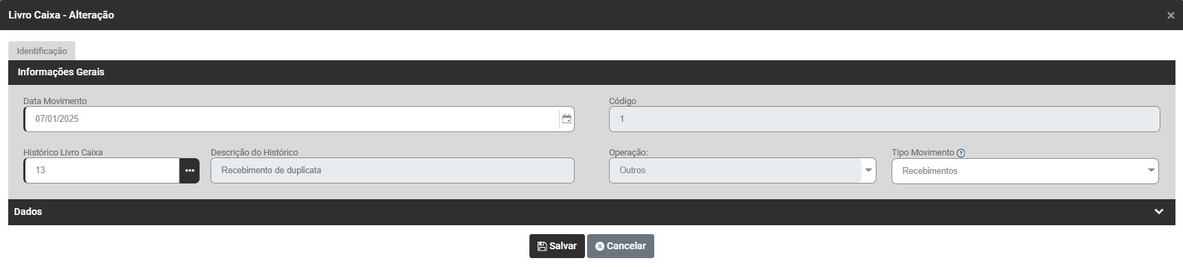 - Tipo de Movimento - Preencha nesse campo se esse movimento é um recebimento ou pagamento.