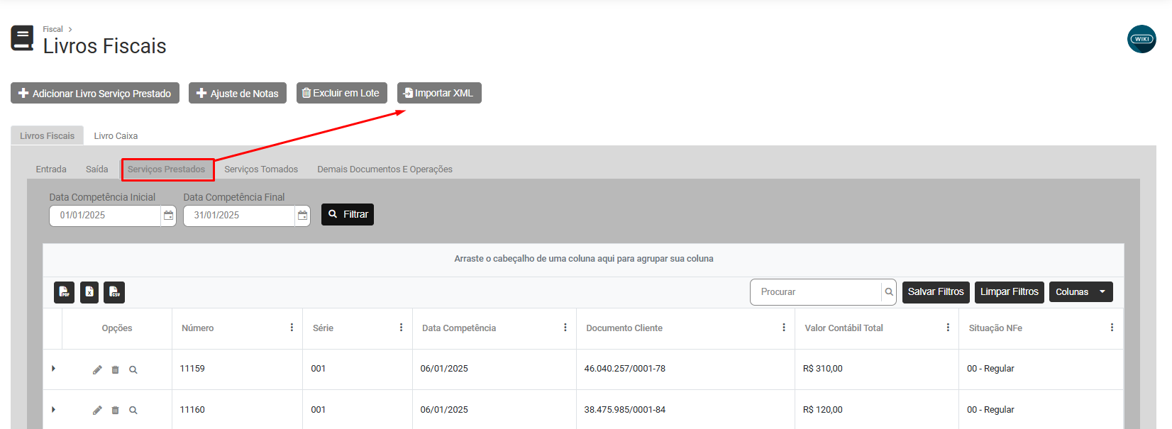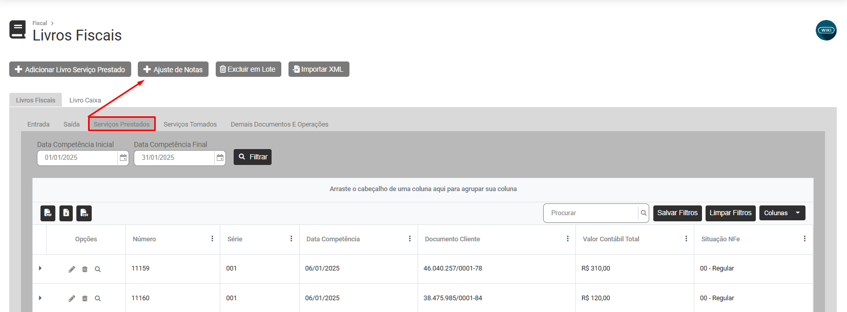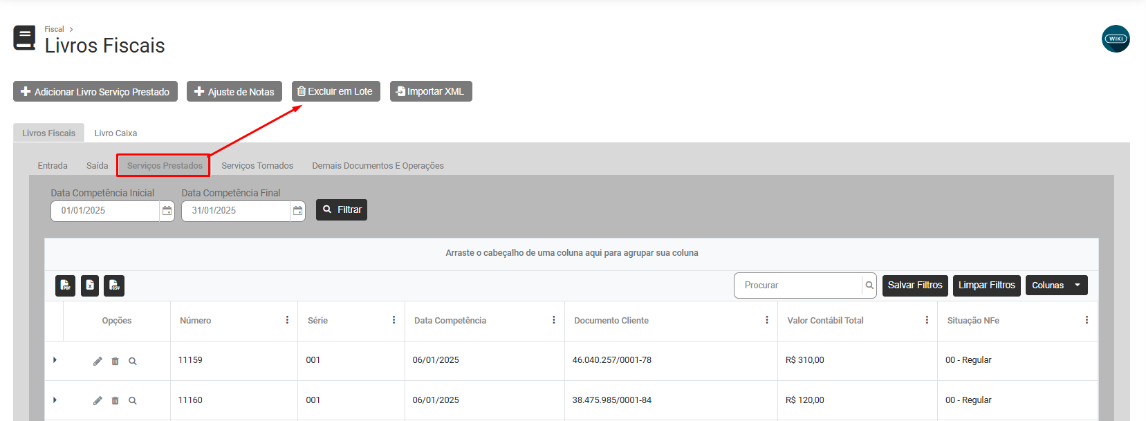 Ao acessar a aba Livros Fiscais você encontrará 5 abas
