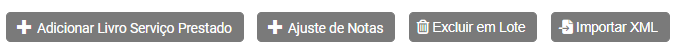 Ao acessar a ABA SERVIÇOS PRESTADOS será apresentada na parte superior da tela os botões