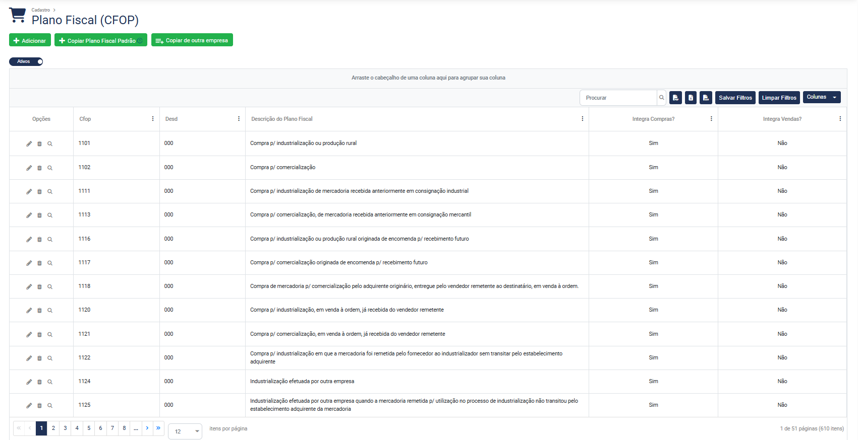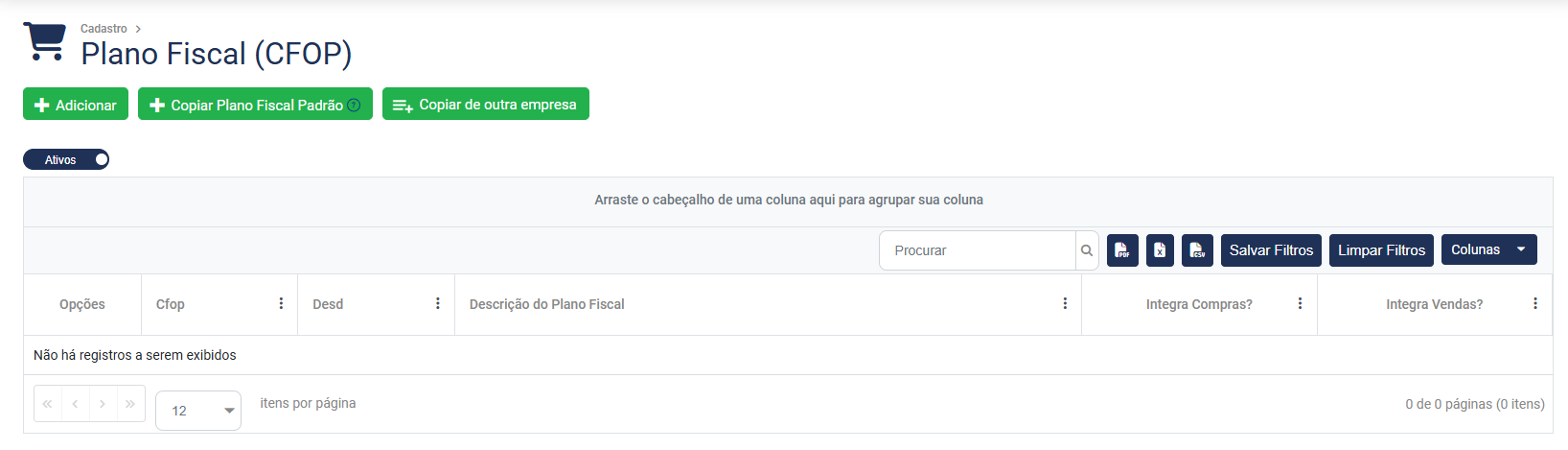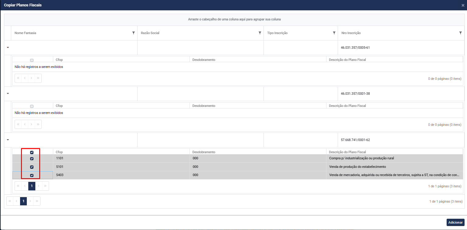 2) Botão Copiar Plano Fiscal Padrão - Ao clicar no botão, só serão copiados os Planos Fiscais que não foram cadastrados previamente