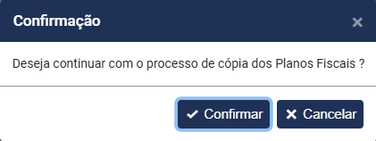 Ao acionar o botão o Sistema apresentará mensagem "Deseja continuar com o processo de cópia dos Planos Fiscais?