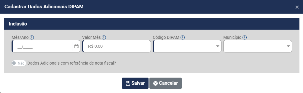 Cadastro dos Dados Adicionais da DIPAM (Declaração para o Índice de Participação dos Municípios)