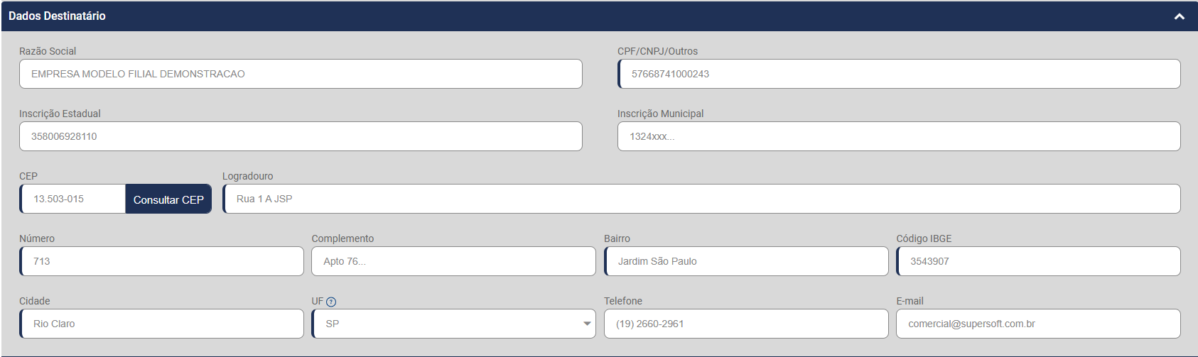 Na aba Identificação informe os dados do documento, Destinatário e Emitente