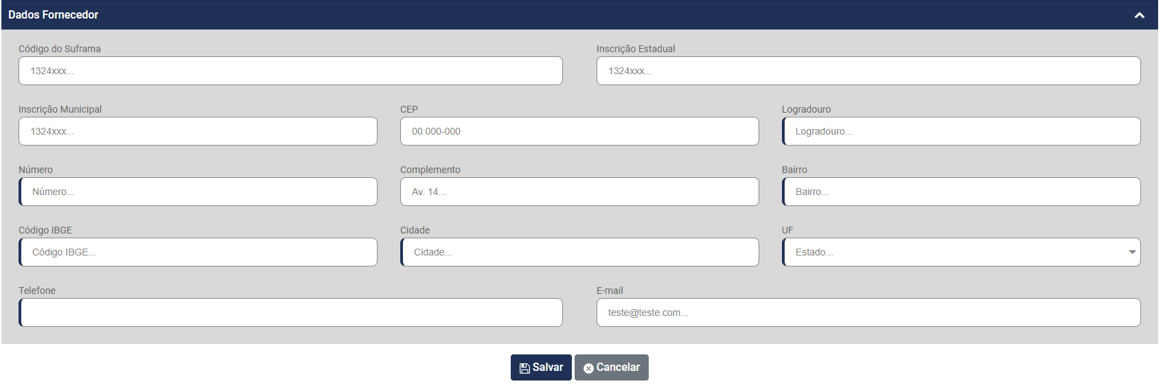 Em identificação você deverá informar todos os dados da Nota Fiscal de Entrada da Mercadoria que está sendo cadastrada, dados do Destinatário e Dados do Fornecedor
