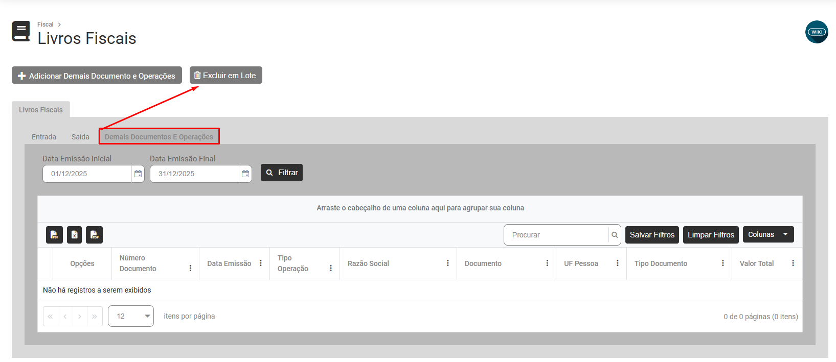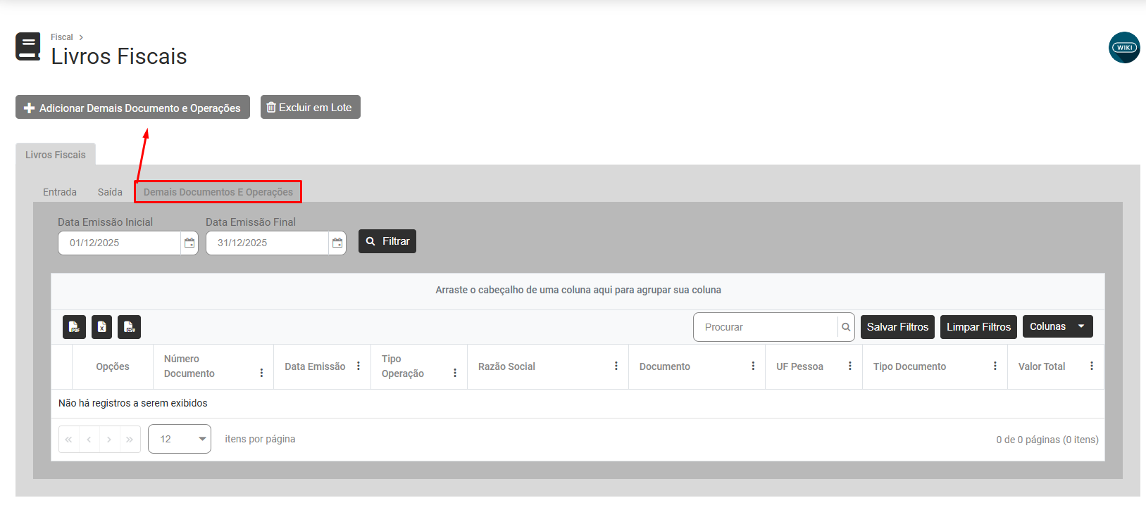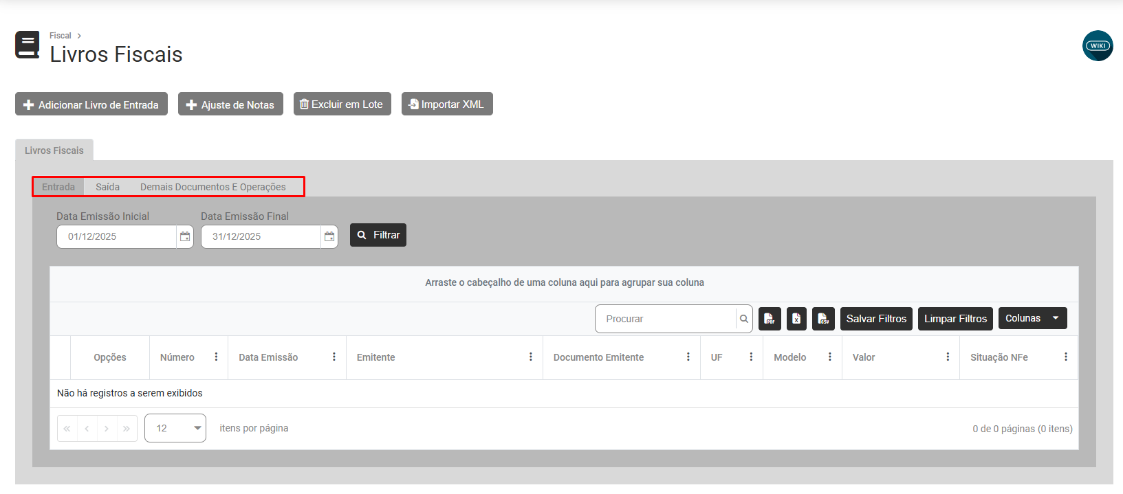 .....Cadastro dos Livros Fiscais (Entrada, Saída, Demais Documentos e Operações)