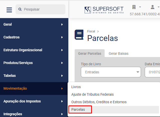 Cadastro/Geração de Parcelas
